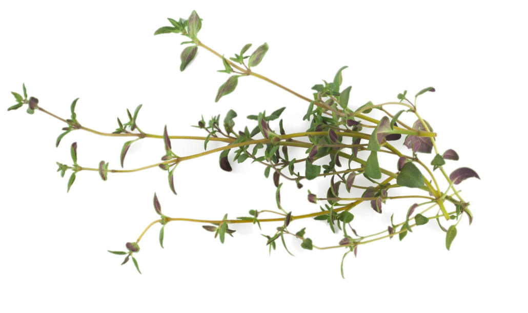 It has a slightly aniseed flavour, so it is especially recommended for curries and spicy dishes. Olive green leaves, attractive purple stems. Prefers warm temperatures. 40 cm