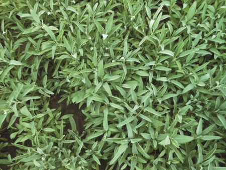 Grey green leaves, raspberry blue flowers in late summer. 60 cm